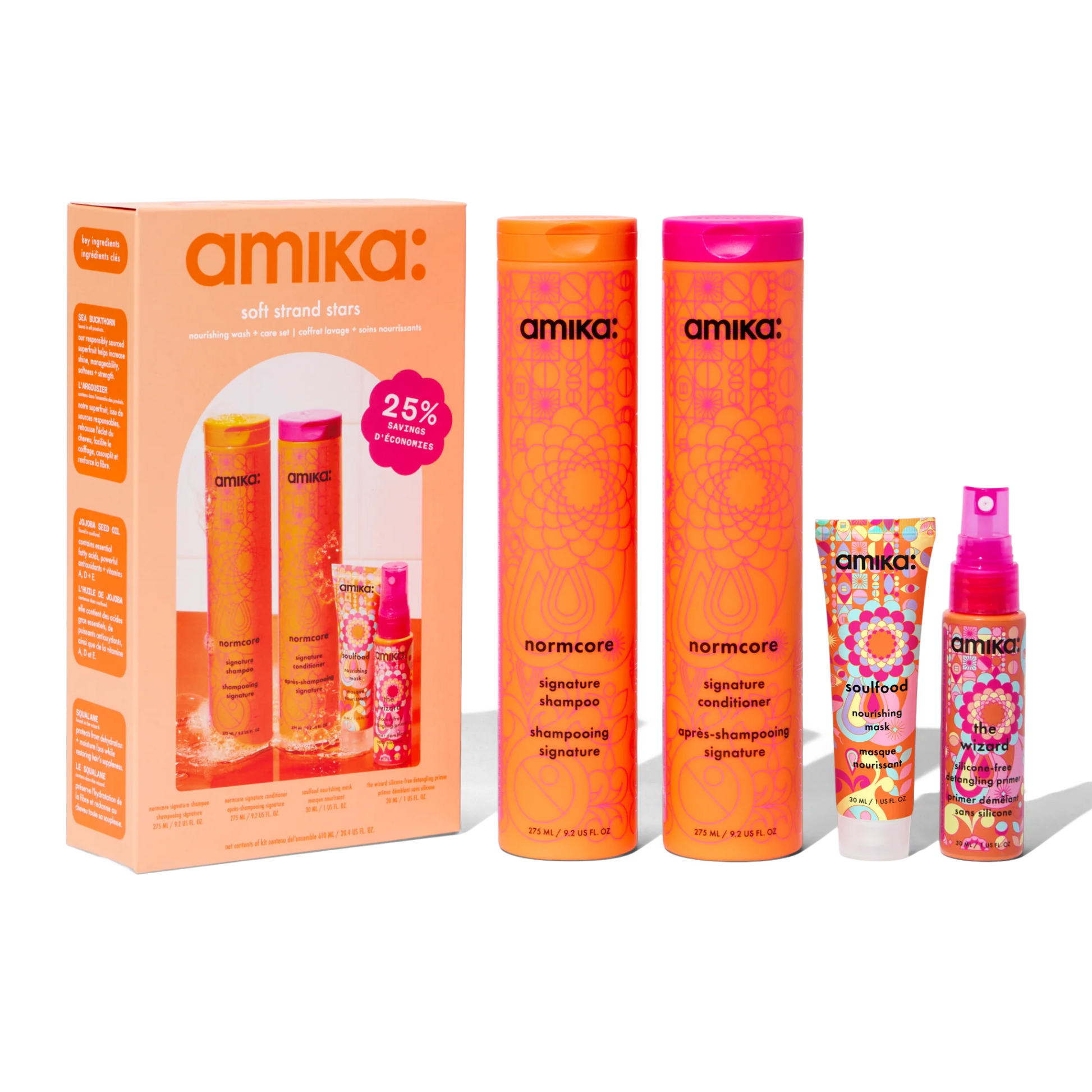 A set that makes your strands the star! show your hair you care with a nourishing routine starring full-sizes of normcore shampoo + conditioner + travel sizes of soulfood nourishing mask + the wizard silicone-free detangling primer.