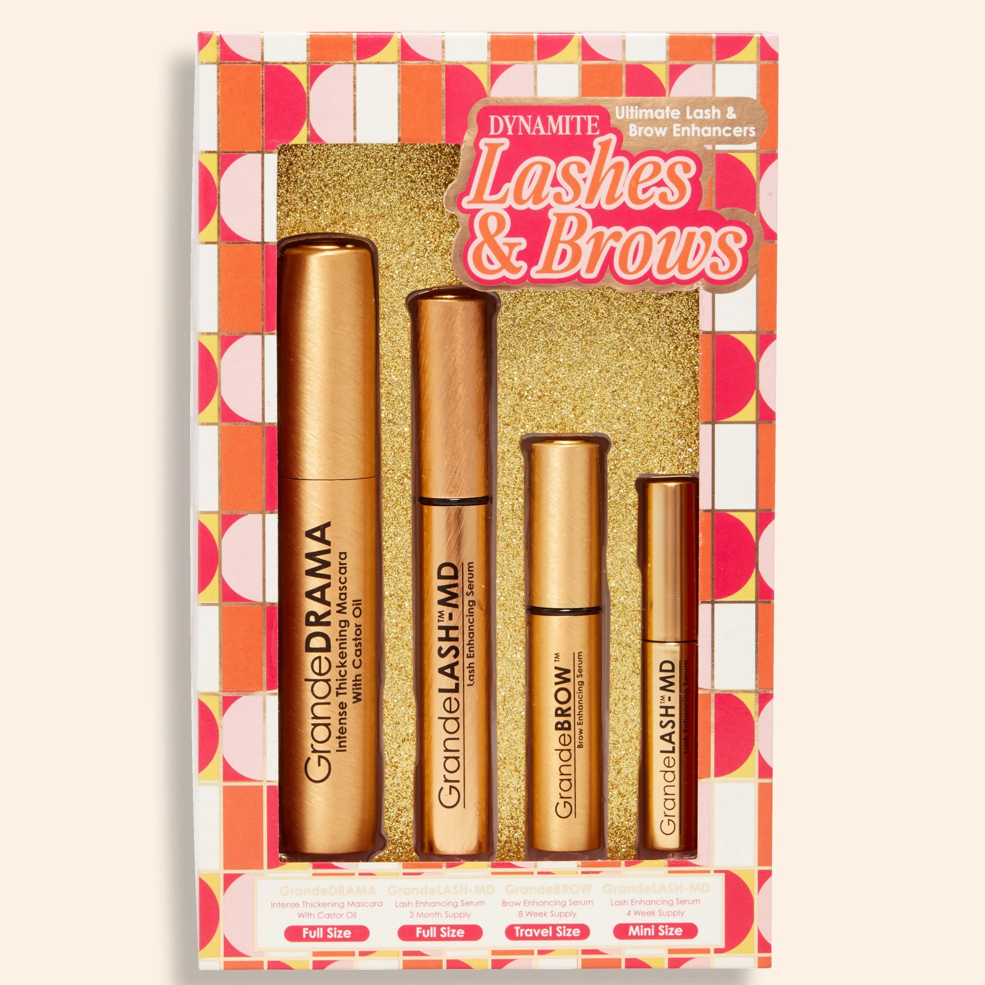 Power up your lash and brow routine with this explosive set of eye enhancing essentials. Featuring full-size GrandeLASH-MD, travel-size GrandeBROW, & full-size GrandeDRAMA, this combo is the perfect set to deliver a bold, sultry look. Plus, as a bonus, receive a mini-sized GrandeLASH-MD for your on-the-go travel needs. Step up your eye game this season!