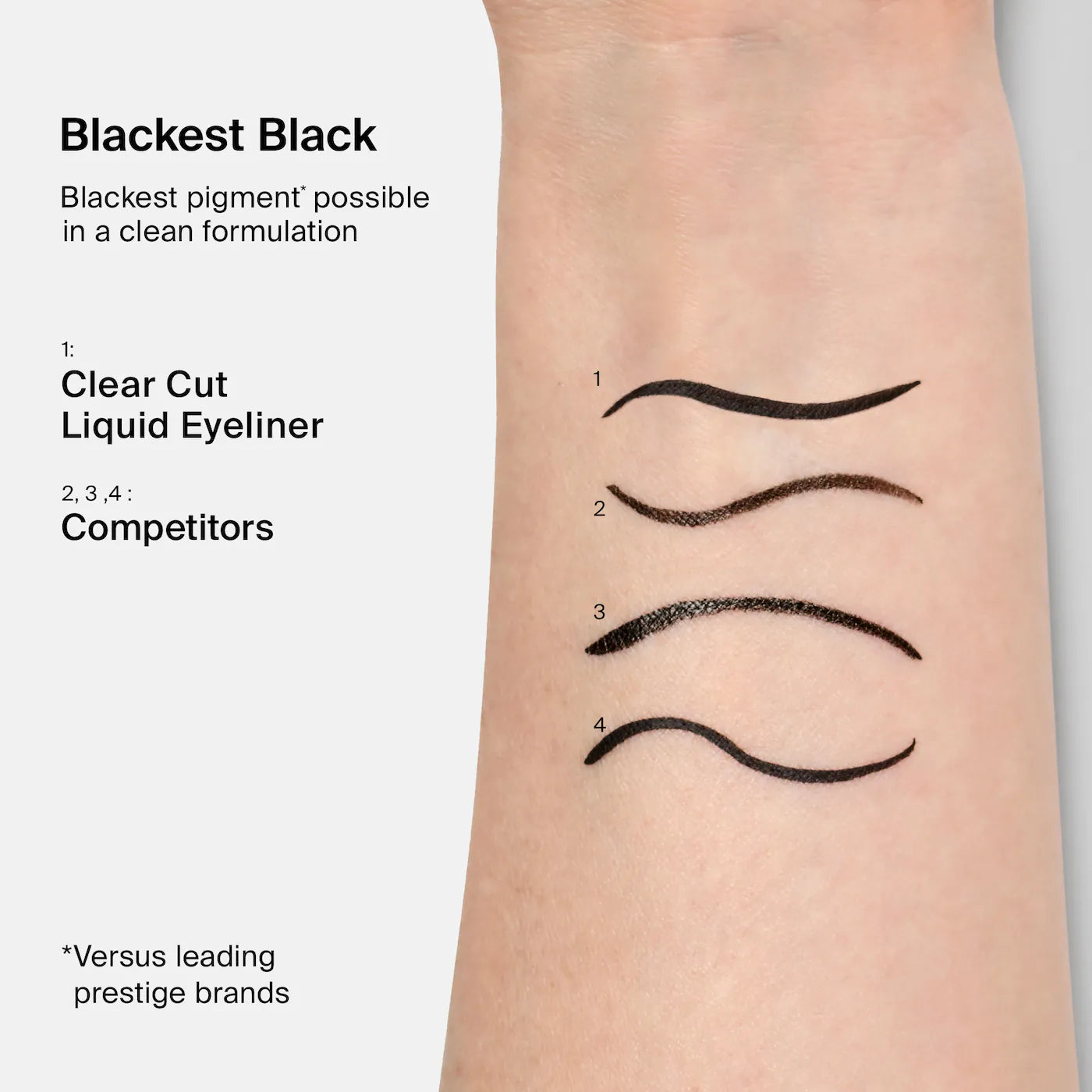 What it is: A clean, carbon black-free liquid eyeliner delivering the blackest black*, long-lasting matte finish in a custom, calligraphy-inspired brush.
