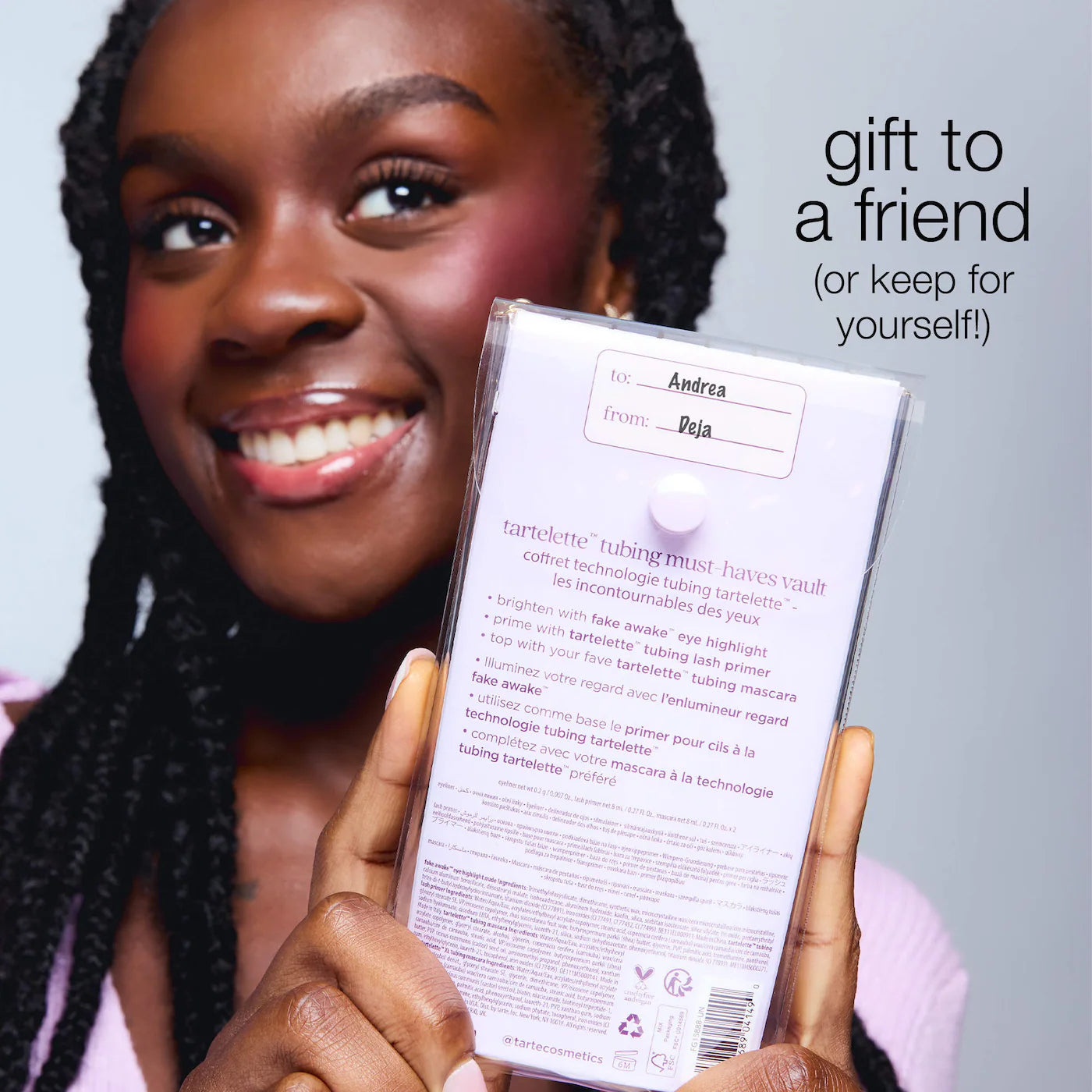 What Else You Need to Know Give the gift of wide-awake eyes with four full-size faves! Supercharge your mascara’s performance with the tubing lash primer. Get 24-hour wear with XL tubing mascara, and rock the lash extension effect with the original Tubing Mascara. Add fake awake™ eye highlight for eight hours of sleep in a stick.